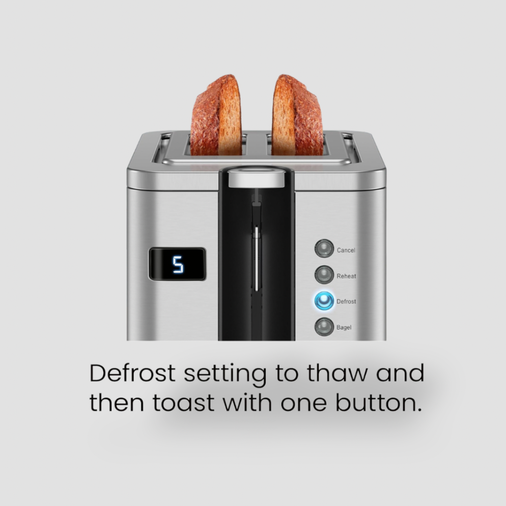 • Modern Convenience – Digital countdown timer with LED display lets you track toasting in real time—no more guesswork or burnt slices