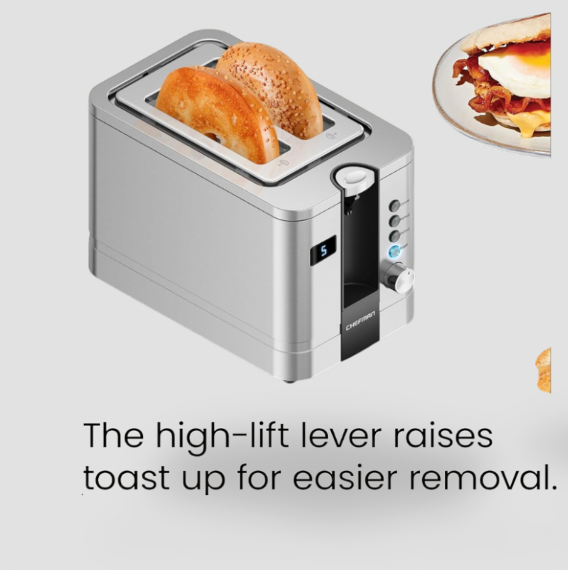 • Extra-Wide Slots – Easily fits thick bagels, artisan breads, and more; lift-assist and anti-jam features ensure safe, smooth removal