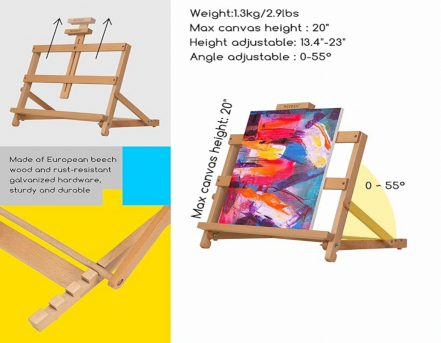 - Sturdy Easel – European beechwood tabletop design with a smooth, burr-free finish