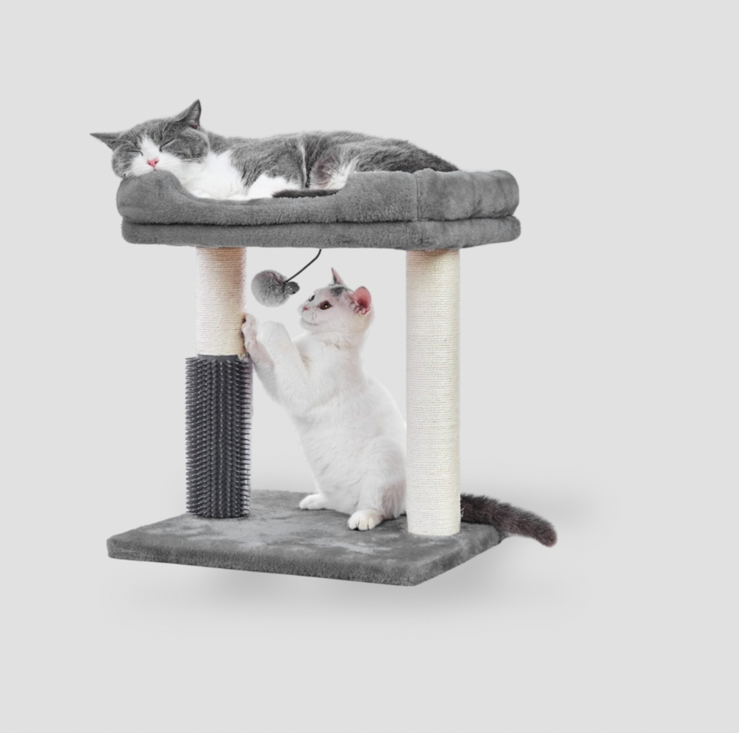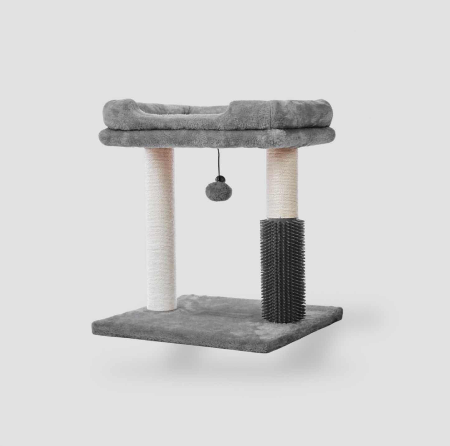 MeowSir Small Cat Tree 4-in-1 – Cat Scratching Post with Top Perch, Self-Groomer & Hanging Ball – Grey