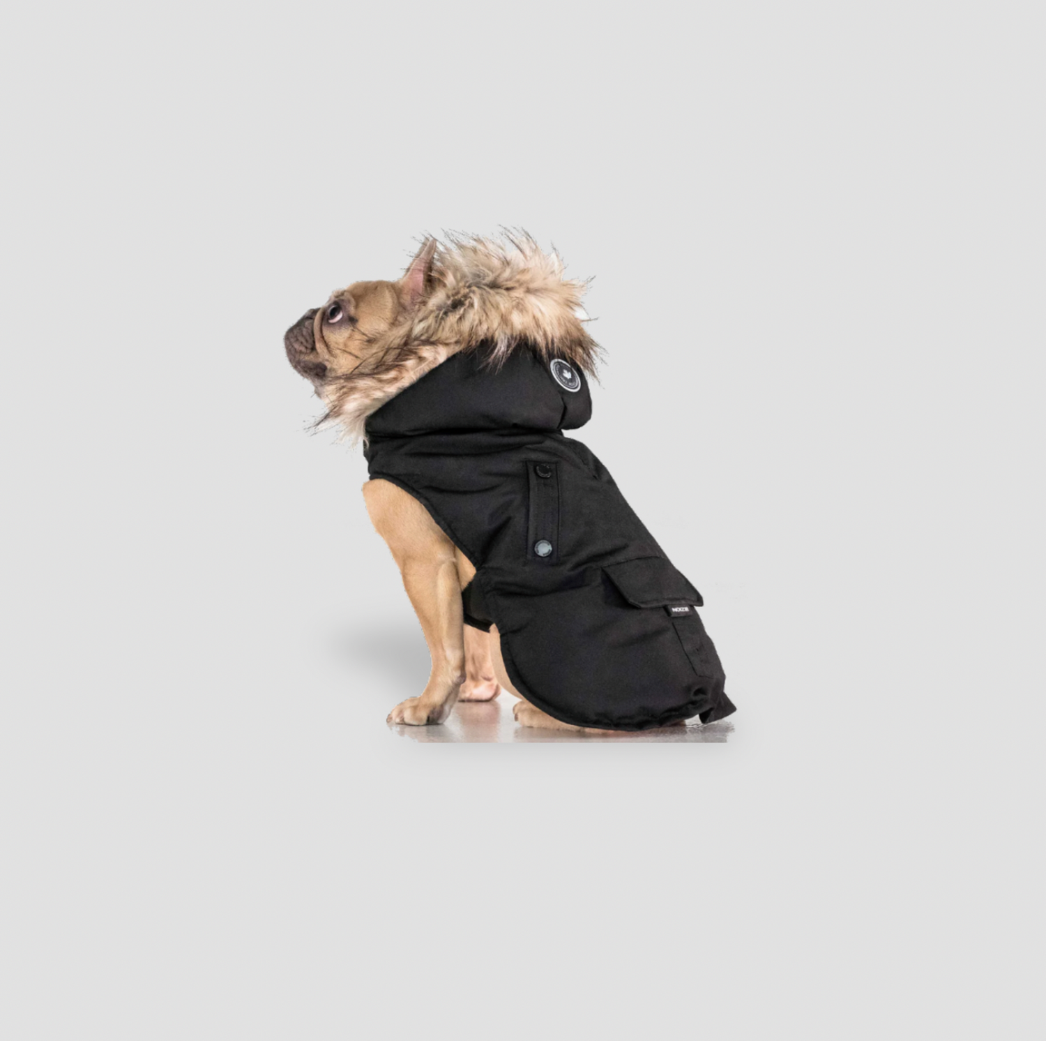 The Karter Dog Coat by Noize combines warmth, style, and functionality for your furry friend. Featuring an insulated lining, a fixed hood with faux fur trim, and snap-closure welt pockets, this coat is perfect for chilly walks. A leash portal and a pocket for waste bags make outings more convenient. Designed for comfort and durability.