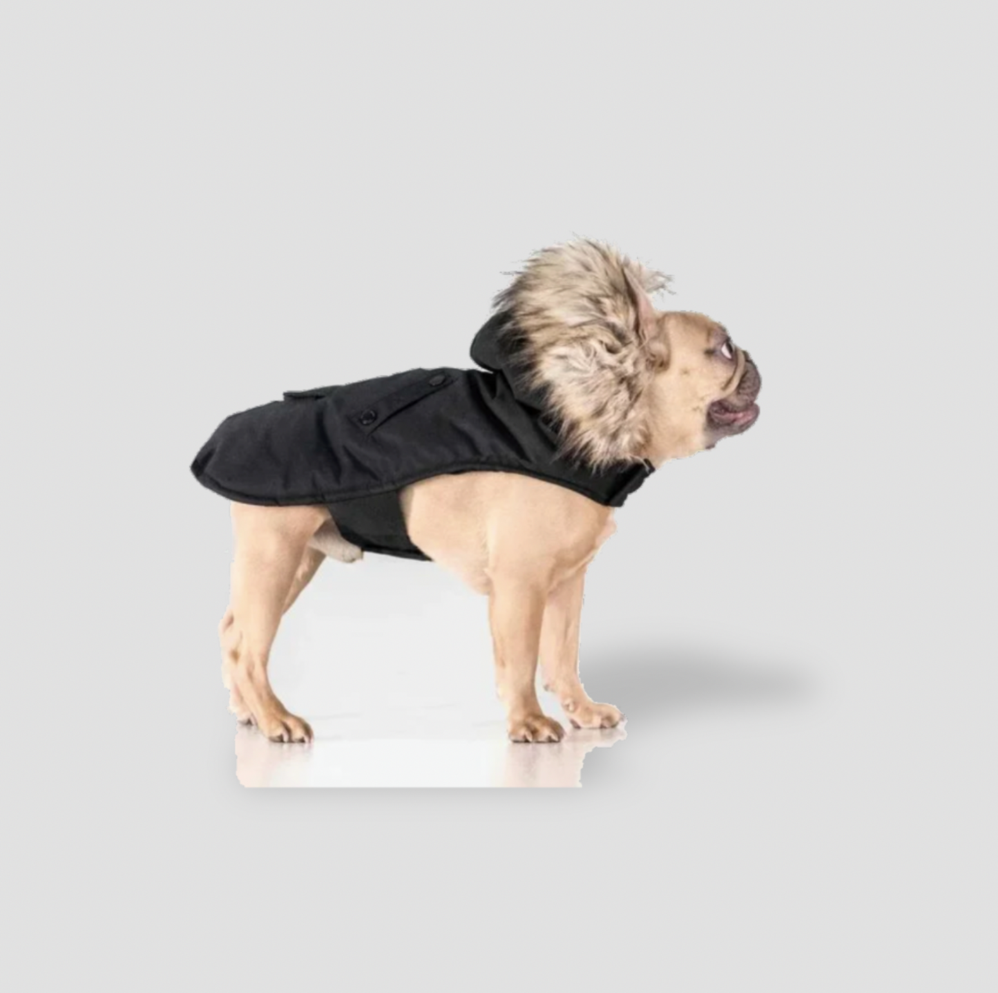 Features functional pockets for waste bags and a fashionable faux fur-trimmed hood for a chic look.