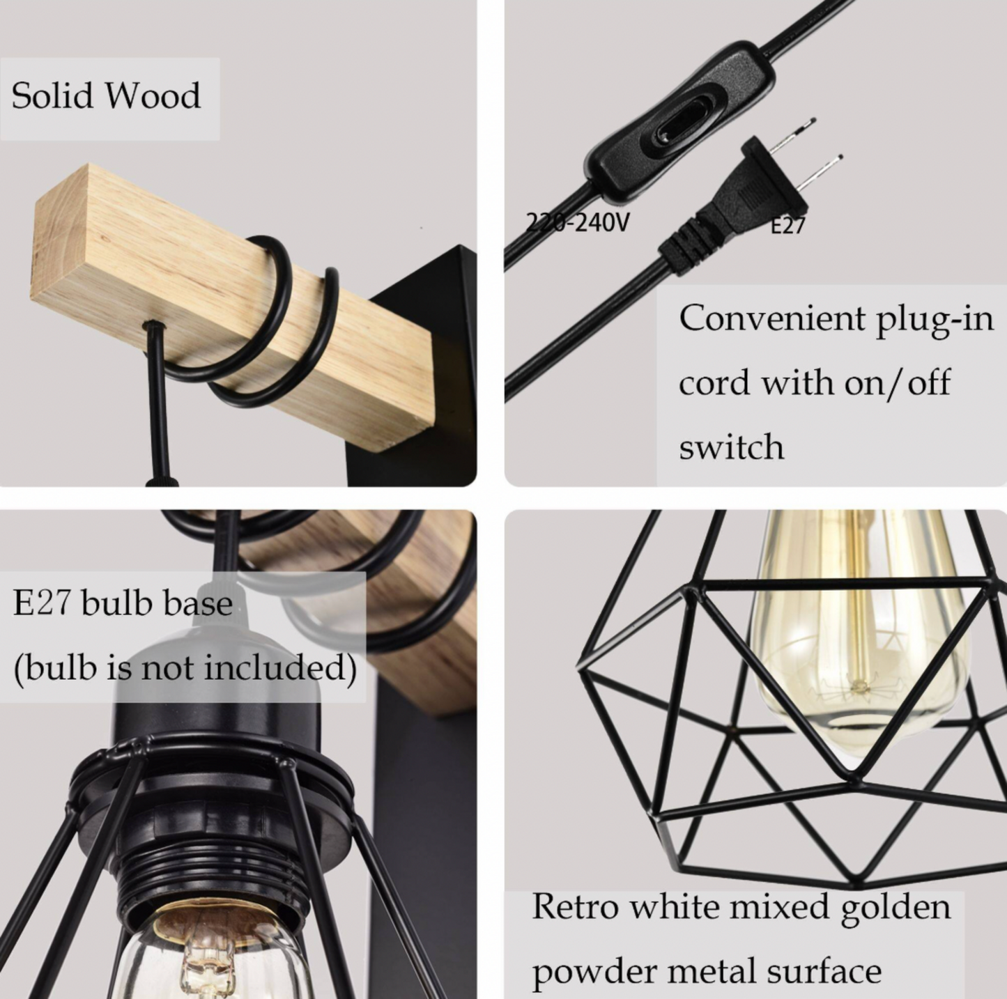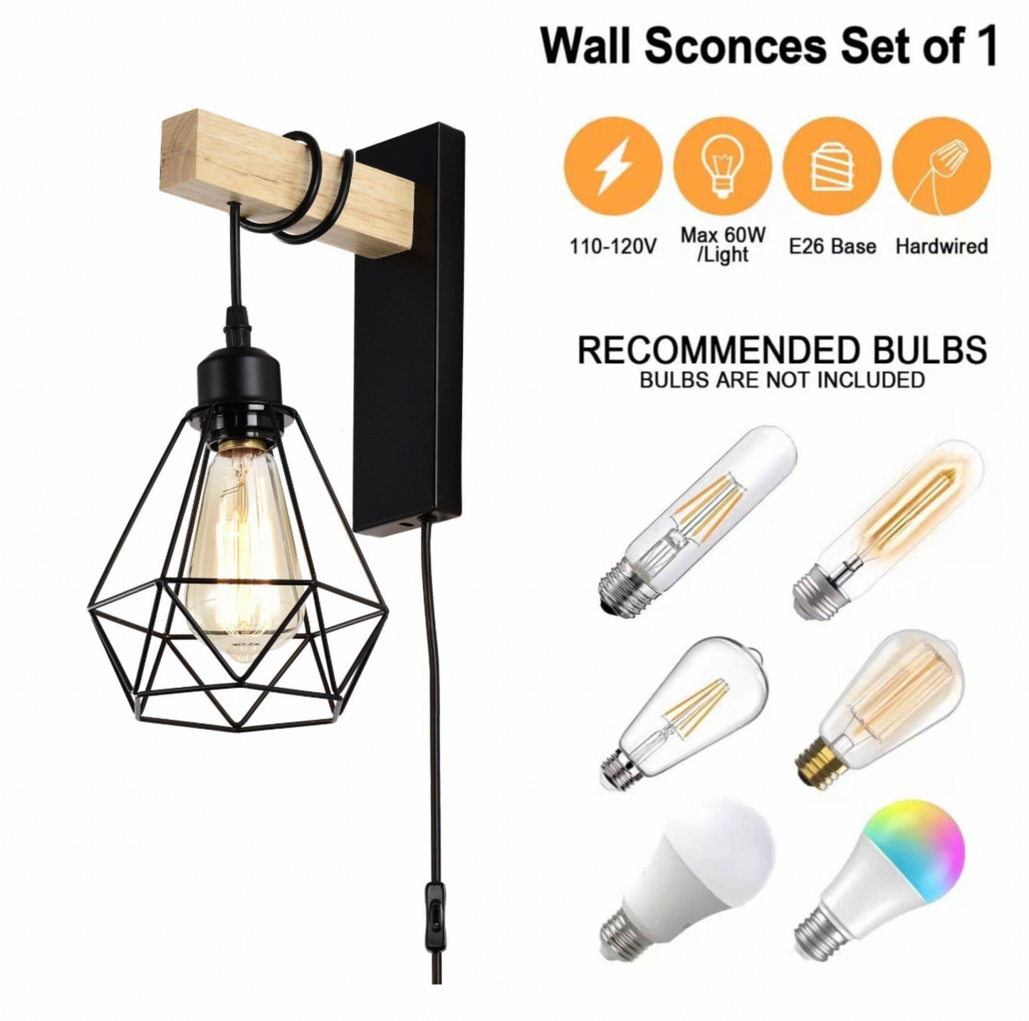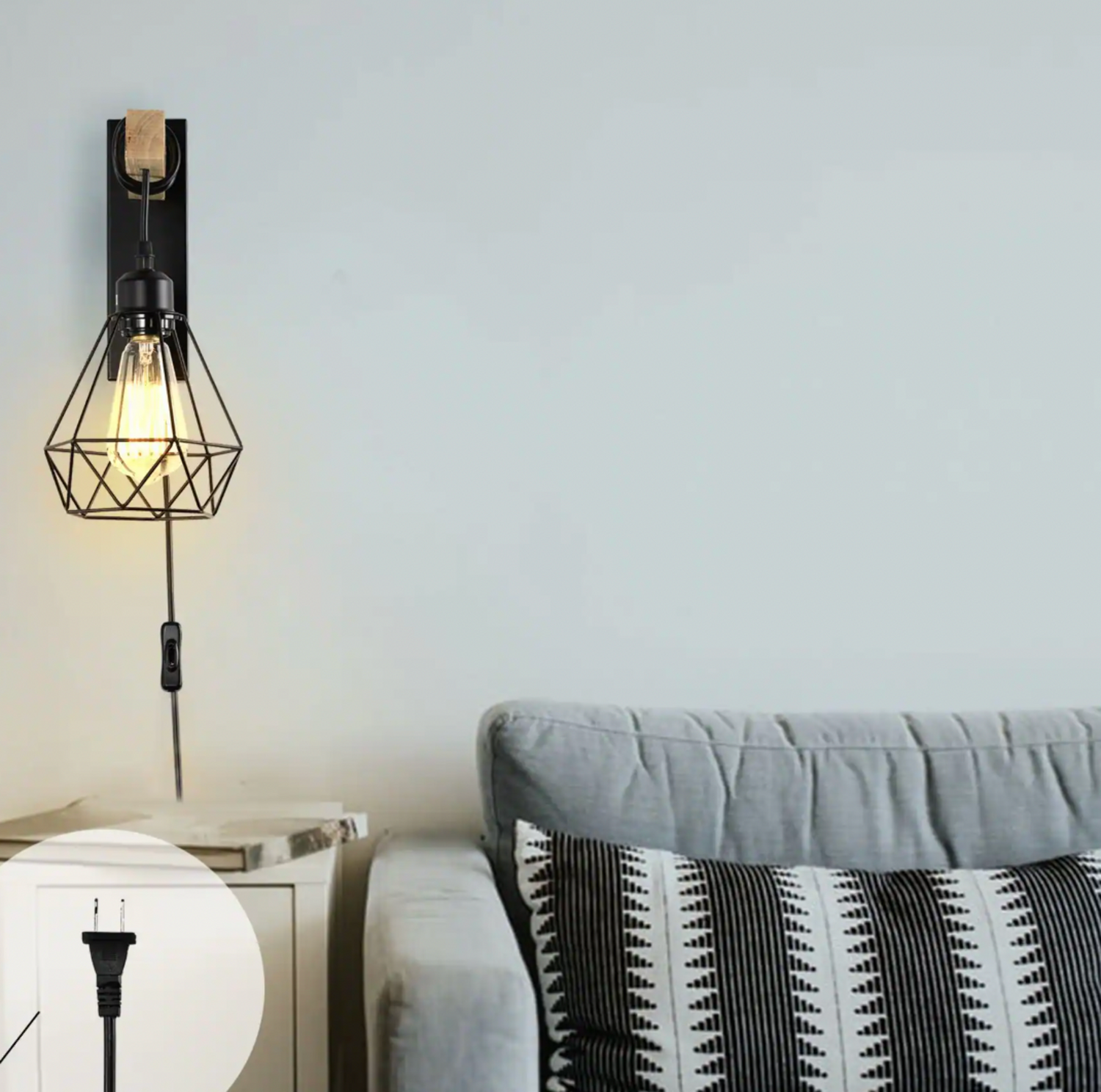 Bring warmth and character to your walls with this set of 2 Plug-In Wall Sconces, blending natural wood with black metal for a rustic-meets-modern charm. Featuring a vintage industrial design, these versatile wall lights are perfect for the bedroom, living room, hallway, or reading nook—adding both function and style to any setting.