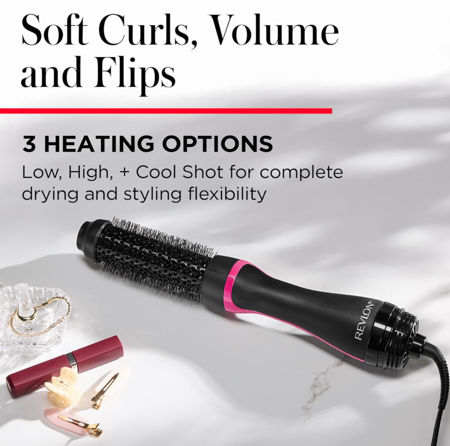 Boost volume, shine, and style in one easy step. The Revlon One-Step Root Booster combines drying and styling with a 1.5” round brush—perfect for root lift, soft curls, and smooth finishes. Ionic Technology® tames frizz and adds shine, while the ceramic-coated barrel reduces heat damage. With 3 heat settings and a tangle-free swivel cord, it’s fast, easy, and salon-worthy—every time.