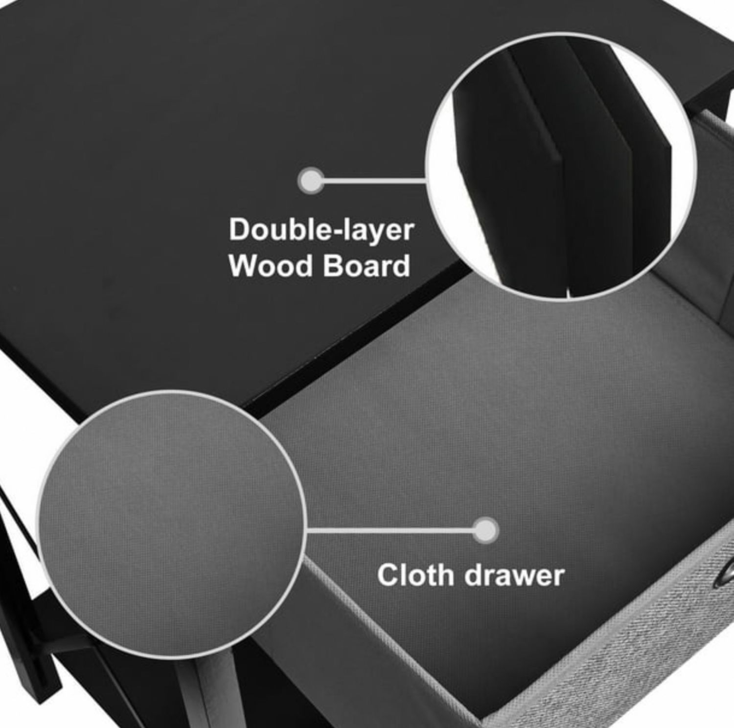 • Sturdy & Durable Construction – Made with a strong metal frame, wooden top, and fabric drawer for long-lasting use