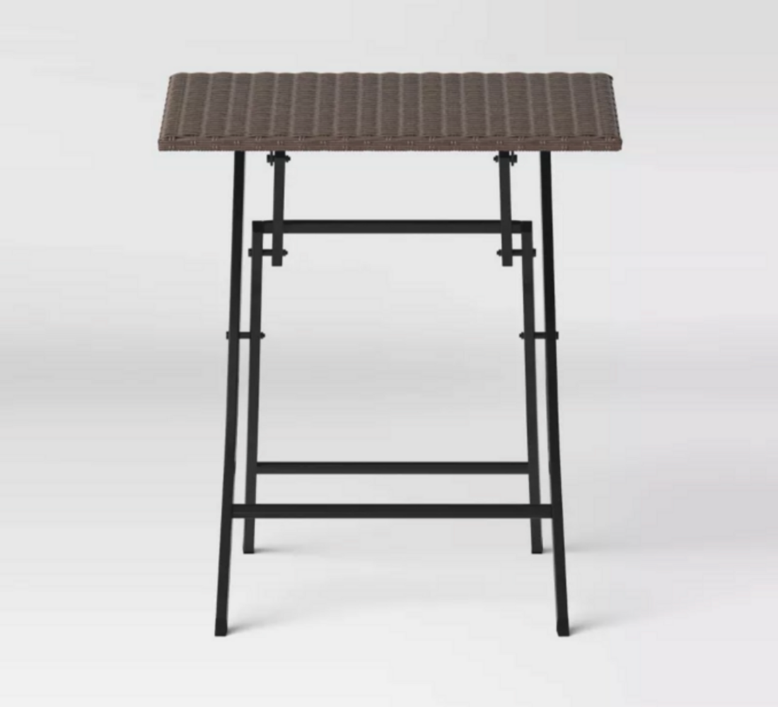 All-Weather Wicker Square Folding Outdoor Side Table -Steel Frame, Rust-Resistant