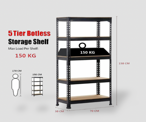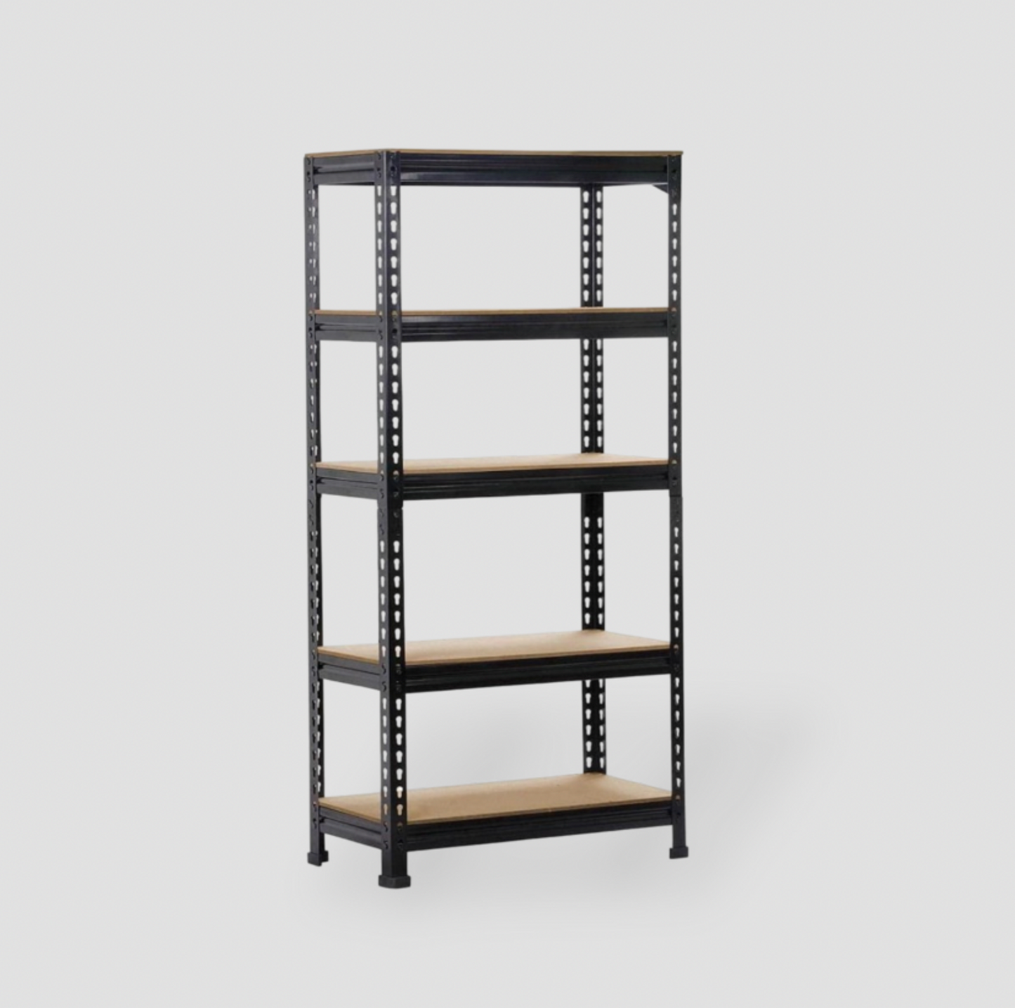 The Yaheetech Black Adjustable 5-Shelf Storage Rack is a durable and versatile shelving unit designed to maximize storage space in garages, offices, kitchens, and more. Made with a sturdy iron frame and MDF boards, this boltless shelving unit offers a weight capacity of 150 kg per shelf. Its adjustable design allows customization to fit various storage needs, making it an ideal solution for both display and organization. Equipped with protective rubber pads, it ensures floor protection and added stability.